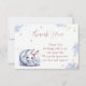 Supersöt tack-kort med söt liten vit kanin som bär en vacker rosa rosett och en halvmåne silvermåne med några fallande guldstjärnor.