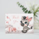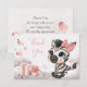 Söt tack-kort med söt liten kvinnlig zebra som bär en söt rosa rosett med några hjärtan som sitter på moln