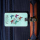 En personlig bagagetagg designad med elegant flödande fjäril på många ljusa färger, t.ex. grönt, orange, blått, rött och rosa. Blommigten Temat teckning ger en liten fingertryckning. Ange vattenfärgsbakgrund för myntgrönt.