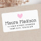 Returadressetiketter med ett sött, ljusrosa hjärta på vit bakgrund med din returadress nedan.