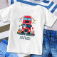 Personlig söt, röd London dubbeldäckare transportbuss med ballonger, flaggor och teddybjörn baby design