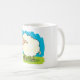 Börja din morgon med ett leende med den här söta tecknade får-marken. Med en fluffig vit lamm som står på grönt gräs mot en livfull blå himmel, ger denna fantasifulla karaktärsdesign en touch av charm från lantbrukets djur till din kaffe- eller tebord. Den är en idealisk present till djurälskare, bönder eller någon som njuter av söt pastoral konst i sitt kök. Den här hållbara och glada mugg är perfekt för hemmet eller kontoret och gör varje klunk som en solig dag på landsbygden.