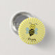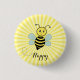 Söt lycklig bin och kalligrafi på gula solstrålar knapp. Texten kan anpassas.