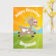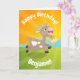 Nu är det fest! Denna bedårande lyckliga geten kommer att tillföra lite gårdsglädje till vilken fest som helst . Teckningen är gjord i söt kartongillustrationsstil på ett soligt fält!
