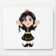 Söt lycklig liten flicka i svart klänning tecknad serie