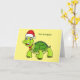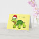 Söt lycklig sköldpadda som bär tomtehatt kort