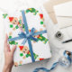 Modern söt leprechaun som håller en lyckoklöver Presentinslagspapper. Grön elf som håller en klöver för tur!