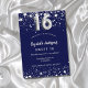 En modern, snyggt och glamorös inbjudan till en svensk 16, 16:e födelsedagsfest. En marin blå bakgrund, dekorerad med faux silver-stjärnor. Anpassa och lägg till ditt namn och information om party. Nummer 16 skrivs med ett stil-teckensnitt med ballong.