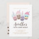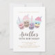Minimalistisk boba/bubble milk tea-födelsedagsinbjudan med söta kawaii-bubbelmjölktebilder och modern enkel typografi. Personlig inbjudan med namn, ålder och festdetaljer. Perfekt för boba-tema-fest.