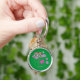 Söt Modern Blommigt Grönt Rund Silverfärgad Nyckelring