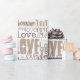 Kärlek typografi ord i olika typsnitt, guld beige toner modern design på vit bakgrund, för Alla hjärtans dag, födelsedag, sweet 16, tonåring, brud shower, barn födsel, möhippa presenter