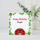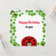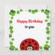 Söt glad nyckelpiga omgiven av tur fyra blad klöver Födelsedagskort. Perfekt för alla. Nyckelpiga är en universell symbol för tur! Bra för barn och vuxna!