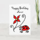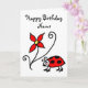 Söta tecknad bild på en söt nyckelpiga eller nyckelpiga som bär högklackade skor och med hjärtformad rodnad under en röd blomma. Kortet har en vacker minimal vit bakgrund. Personifiera enkelt detta kort genom att redigera malltexten på framsidan och insidan. Tack för att du tittar på mina designs!