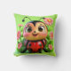 Söt nyckelpigaillustration omgiven av blommor kudde