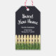 Söt nytt hem med betesstaket och trädgård presentetikett