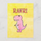 Söt och arg rosa tecknad T-Rex gammalt papper Vykort