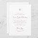 Den här enkla och snyggt-, vit- och ro färgad religiösa heliga Confirmation-inbjudan har visemisk, vintage stil-skripttypografi och en faux guld ro guld kor. En elegant, en klassisk minimalist som letar efter henne som fortfarande är unik och contemporary.