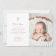 Den här enkla och snyggt, faux ro guld och white religiösa Baptism eller Christening-tack som du har på kortet, har visuell, vintage stil-skripttypografi och en faux ro guld kor med ditt foto. En elegant, ett klassiskt minimalistiskt utseende som fortfarande är unikt och contemporary.