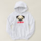 Rolig Pug-liv hoodie med en söt illustration av en fawnfärgad Pug hund ansikte.