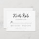Svarskortet för enkel och snyggt, svartvitt och svart bröllop OSA har en speciell skripttypografi för vintage stil. En elegant, ett klassiskt minimalistiskt utseende som fortfarande är unikt och contemporary.