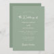 Den här enkla och snyggt, grönt och inbjudan till elfenbensbröllop har visemisk, vintage stil-manustypografi. Huvudmanuset säger "bröllop av". En elegant, ett klassiskt minimalistiskt utseende som fortfarande är trendig och contemporary.