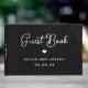 Den här enkla och snyggt, svarta gästen i bröllop bok har en vit skripttypografi i vintage och ett passande hjärta. En elegant, ett klassiskt minimalistiskt utseende som fortfarande är unikt och contemporary.