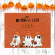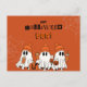 Den här söta Halloween-kortet visar tre lekfulla spöken som bär orange mössa, vart och ett håller i bubbel-te eller en pumpahink, mot en kraftfull orange bakgrund med spindelnätsdetaljer. Den udda texten "Happy Halloween Boo!" tillför en rolig och festlig stämning. Perfekt för att skicka kusliga hälsningar, dekorera din Halloween-fest eller ge bort som en souvenir. Den glada spöktrotten får det här kortet att sticka ut, och blandar modern humor med traditionellt Halloween-firande. Ett måste för alla som älskar lättsamma Halloween-papper.