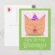 Söt orange katt med födelsedags hatt önskningar vykort