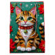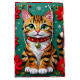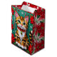 En söt julklappspåse med en orange kattunge och julstjärna blommor.
