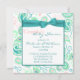 Snyggt kvadratpars babyduschinbjudan utförd i en färgstark, teal, akvarier, mint grönt och rosa paisley mönster. Bilder av ett vitt textområde med kanter, i mitten, har ett tealband och en söt båge överst. Baksidan görs i samma färgade paisley mönster, med bogen, i mitten och en märkre hängande, för text. Anpassa all text, fram och tillbaka till kostym som du behöver. Underbar för gender av baby, twillingar eller okända gender duschar.