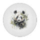 akvarellmålning av en söt panda som sitter mellan bambugräs på en vit bakgrund