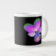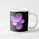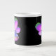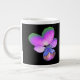 Fantastisk mugg har ett foto av en vild Pansy-blomma. Fotot har blivit artificiellt färgad, vilket har lett till en pansy med ljusrosa lila petals med grönt spetsar och ett djupt blått centrum. Bakgrunden är svart för att få blomman att framträda.