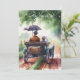 Söt pappa och son som åker i en klassisk bil i akv julkort