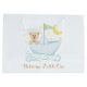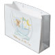 Den söta presentsäcksdesignen har en söt baby brun björn inuti en ljusblå papper båt på ljusblå bakgrund med måne och stjärnor. Anpassa den med ditt personliga meddelande. Sanqunetti Design.
