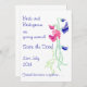 Ett helt anpassade "Spara datumkort" med en delikat vattenfärgsmålning av rosa och blå söta ärter av Judy Adamson.