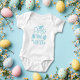 Denna babybodysuit har en blå textbild "Förstagångsjägare" med påskägg. Perfekt för din babys första påsk.