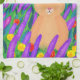 Våren har kommit till denna påskköksduk! Överraska din familj och dina gäster med en solstråle! Ett fält av livfulla lila och gula blommor sträcker sig under en klar blå himmel, med en busig påskhare som hoppar förbi. Det är den perfekta duken att förse med ett personligt "Glad Påsk!" eller vårfirande meddelande. Denna duk garanteras att ge ett leende (och kanske en glad påskäggsjakt!) Illustration: Original Fantabuloustef-målning