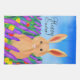 Söt påskhare bland blommor egen text kökshandduk