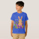 Denna söta barn-t-shirt fångar semesterns väsen med en charmig illustration av Fantabuloustef. En busig påskhare hoppar genom ett fält av färgglada vårblommor under en klar blå himmel.