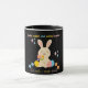 Fira vårens morgnar med denna bedårande påskharen-mugg! Muggens glada design med en leende kanin som håller en bukett färgglada blommor omgiven av festliga ägg är perfekt för kaffe, te eller som gåva under påsken.