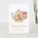 Fira påsk med detta vykort som visar en bedårande kanin inklämd i en vacker dekorerad tekanna, små påskägg och charmerande blomsterdekorationer, allt sammanbundet med ett sött rosa band. Perfekt för att skicka varma hälsningar till familj och vänner under vårhelgen. Lätt att anpassa med ditt familjenamn eller ett personligt meddelande inuti för att göra det unikt för dig.