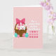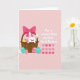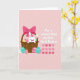 Designad med en mjuk pastellpalett visar kortet en rundkindad vit kanin som tittar ut från en flätad korg med en mild, kärleksfull blick 🐰. Runt korgen samlas dekorerade ägg i en vänlig firande anda, med prickar, sicksackmönster och vågiga linjer i gult, fuchsia, turkos och lavendel. Ett stort rosa band virat runt korgens handtag tillför en söt, romantisk touch, som om det vore en present avsedd för någon nära. På höger sida framträder budskapet ”For a sweet Kiss on this first Easter.” i fet vit text, som tydligt avskiljer sig från bakgrunden. Under orden syns en prydlig rad av sammanlänkade hjärtformer i flera rosa nyanser, som antyder närhet och en delad stund 🌷. Den rosafärgade bakgrunden har svaga diagonala ränder som mjukgör scenen och håller fokus på kaninen och äggen. Fina texturd