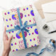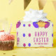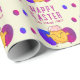 Söt påskkyckling och ägg Glad påsk presentpapper. Söt kyckling med sprucken äggskal på huvudet, blå och lila påskägg. Lägg till ditt namn och text.