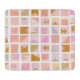 En söt och roligt utformning av små fyrkanter med olika geometriska former i söt pastel färg av rosa, koral och gult parad med en gyllene nyans av bärnstensfärgat.