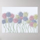 Söt blommor med pastel färg av blått, gult och rosa med ljust grönt stammar av vatten-färgad. Bakgrund till lätt blå himmel. Originalteckning efter, en Artsy Momma.