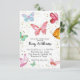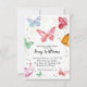Anpassa denna söta fjärilar baby shower inbjudan med din baby shower detaljer enkelt och snabbt, tryck bara på anpassa knappen för att ytterligare ändra och formatera stil och placering av texten. Denna fantasifulla inbjudan har söta pastellfjärilar i rosa blått grönt och gult . Perfekt för att välkomna din nya knippe glädje