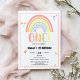 Söt Pastell Regnbåge 1-års Födelsedag Inbjudningar
