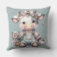 Söt Pastellfärgad Kalv Bebis i Overall med Blommor Kudde