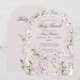 Fira en speciell mamma-till-be med den här charmerande bågduschinbjudan för barn, som innehåller ömtåliga söta blommor i mjuka blad av rosa, lavender och vitt. Blommigten gräns skapar ett romantiskt, trädgårdsinspirerat utseende, medan rundformatet ger en unik och minnesvärd beröring. Perfekt för en baby brunch, dusch eller sprinkling, den här inbjudan blandar elegans med ett nytt vår-känsla. Ett sött sätt att samla vänner och familj till heder för den kommande ankomsten.
