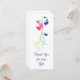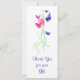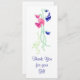 Ett högt, tunt kort, dekorerat med en rosa och blå söt ärtdesign i Art nouveau stil, med ord, "Tack for your Gift" i mörk blått skrift.